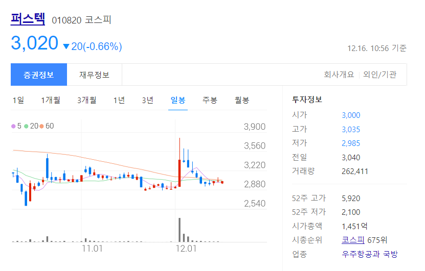 퍼스텍 : 방산관련주