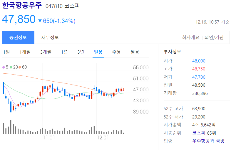 한국항공우주 : 방산관련주